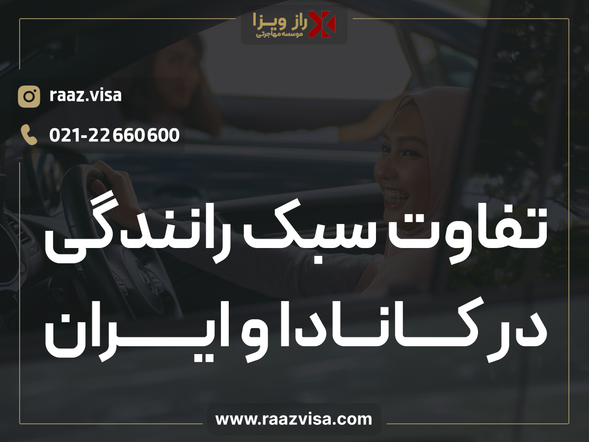 تفاوت اصلی در سبک رانندگی کانادا و ایران در اولویتبندی نظم و احترام به قانون است. بهعنوان مثال حق تقدم عابر پیاده، توجه به حفظ فاصلۀ ایمنی و پایبندی به محدودیت سرعت از مواردی هستند که در کانادا بهخوبی رعایت میشود. این در حالی است که رانندگی در ایران تهاجمی و مبتنی بر واکنشهای لحظهای است.